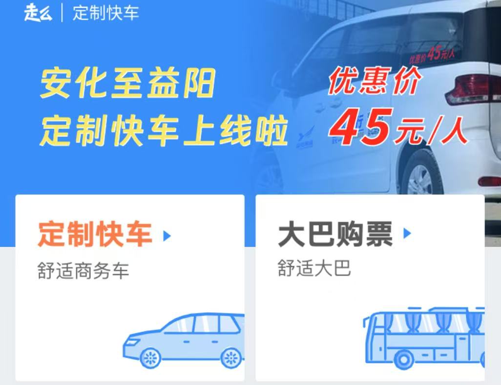 12月30日,益陽湘運集團股份有限公司走么出行小程序“定制快車”模塊全新上線。目前,益安線定制客運業(yè)務(wù)可以從此平臺線上下單。該線益陽城區(qū)段設(shè)有資江機、汽車東站、萬達廣場等10余個站點,乘客可自選就近站點候車,也可預(yù)約接駁服務(wù)。所有定制線路班次均已實現(xiàn)準(zhǔn)點發(fā)車、站點上車、專車接駁。