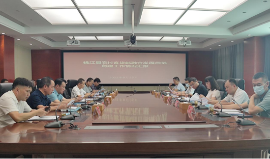 督導(dǎo)組一行到客貨郵縣級物流分揀中心、花果山村等地考察建設(shè)情況,并在桃江縣政府六樓會議室召開匯報會,先觀看了桃江縣客貨郵宣傳片,聽取了桃江縣政府相關(guān)部門及企業(yè)負責(zé)人對客貨郵項目的工作情況匯報。