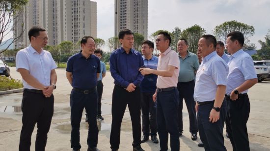 高博(左三)聽(tīng)取桃江縣客運(yùn)物流綜合樞紐項(xiàng)目建設(shè)進(jìn)度。 胡衛(wèi)紅 攝